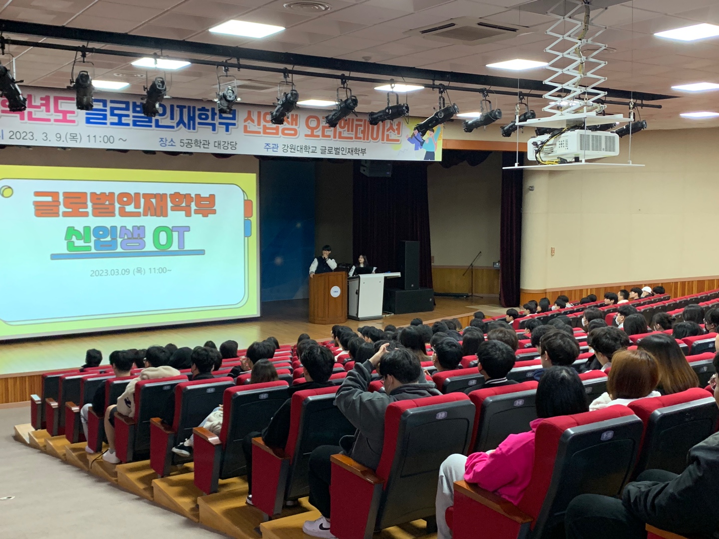 글로벌인재학부 2023년도 신입생 오리엔테이션 및 현장견학 실시 글로벌인재학부에서는 2023학년도 글로벌인재학부 신입생들과 교수님간에 유대감을 갖고 서로 신뢰관계를 향상시켜 소통과 공감의 시간을 통해 대학 생활의 적응력을 향상시키고자 '글로벌인재학부 신입생 오리엔테이션 및 현장견학'을 실시하였습니다. 이번행사 중 오리엔테이션 개최로 신입생 진로탐색을 위한 학부 전공소개 시간을 가졌으며, 현장견학을 통해 캠퍼스가 위치한 지역 내 관광지를 탐방하며 신입생 및 사제간의 친밀감 형성 및 화합과 친목을 다질 수 있는 좋은 시간이였습니다. - 일시 : 2023. 3. 9(목) 10:00~19:00 - 장소 : 5공학관 대강당 및 삼척 레일바이크(삼척시 근덕면)